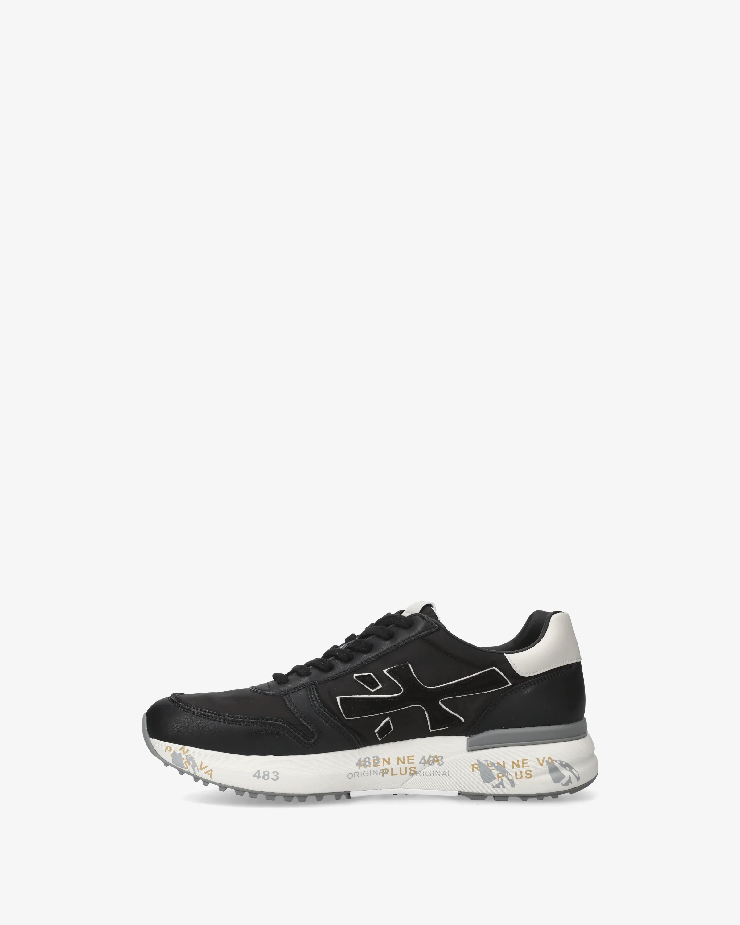Un mix di materiali e pellami di qualità. La scarpa è realizzata in tonalità scure per uno stile casual. L'iconica silhouette è arrichita dal logo Premiata.