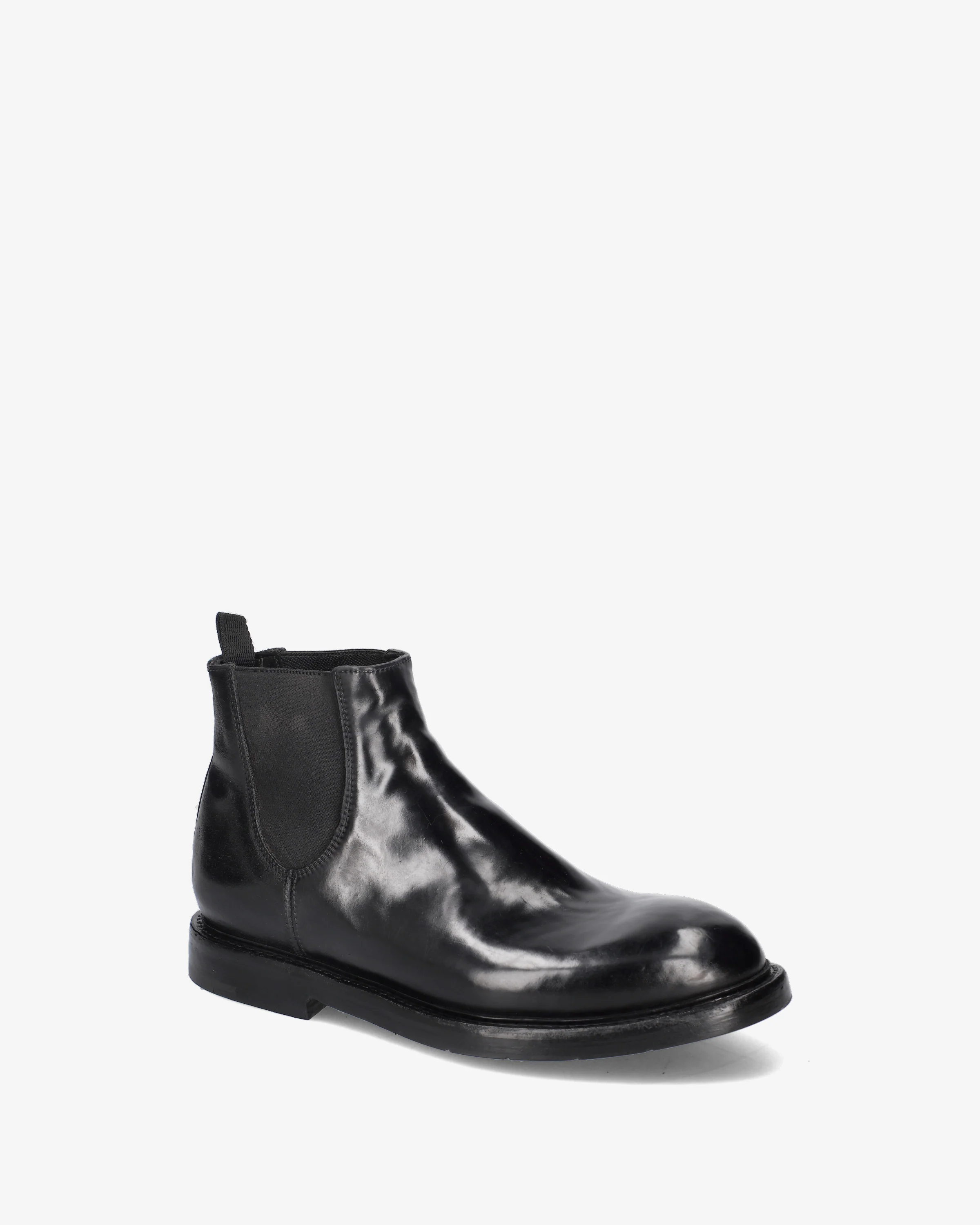 Linee classiche e affusolate per questi stivaletti in Cordovan, una caratteristica inconfondile del brand. Caratterizzati dagli elastici laterali e dalla suola in cuoio con sottotacco in gomma.